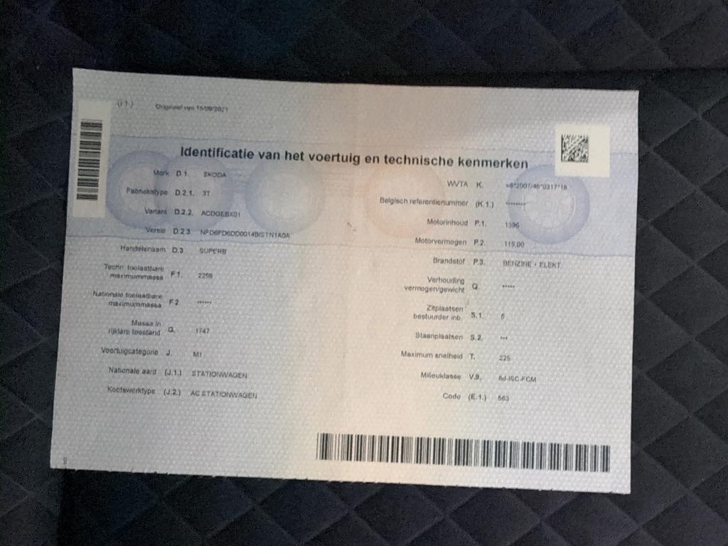 SKODA SUPERB 1.4 TSI PHEV 160KW DSG6 CLEVER (Berline, Benzine, , 09/2021, 94.594 km, 156 pk, CO2: 25 g/km)