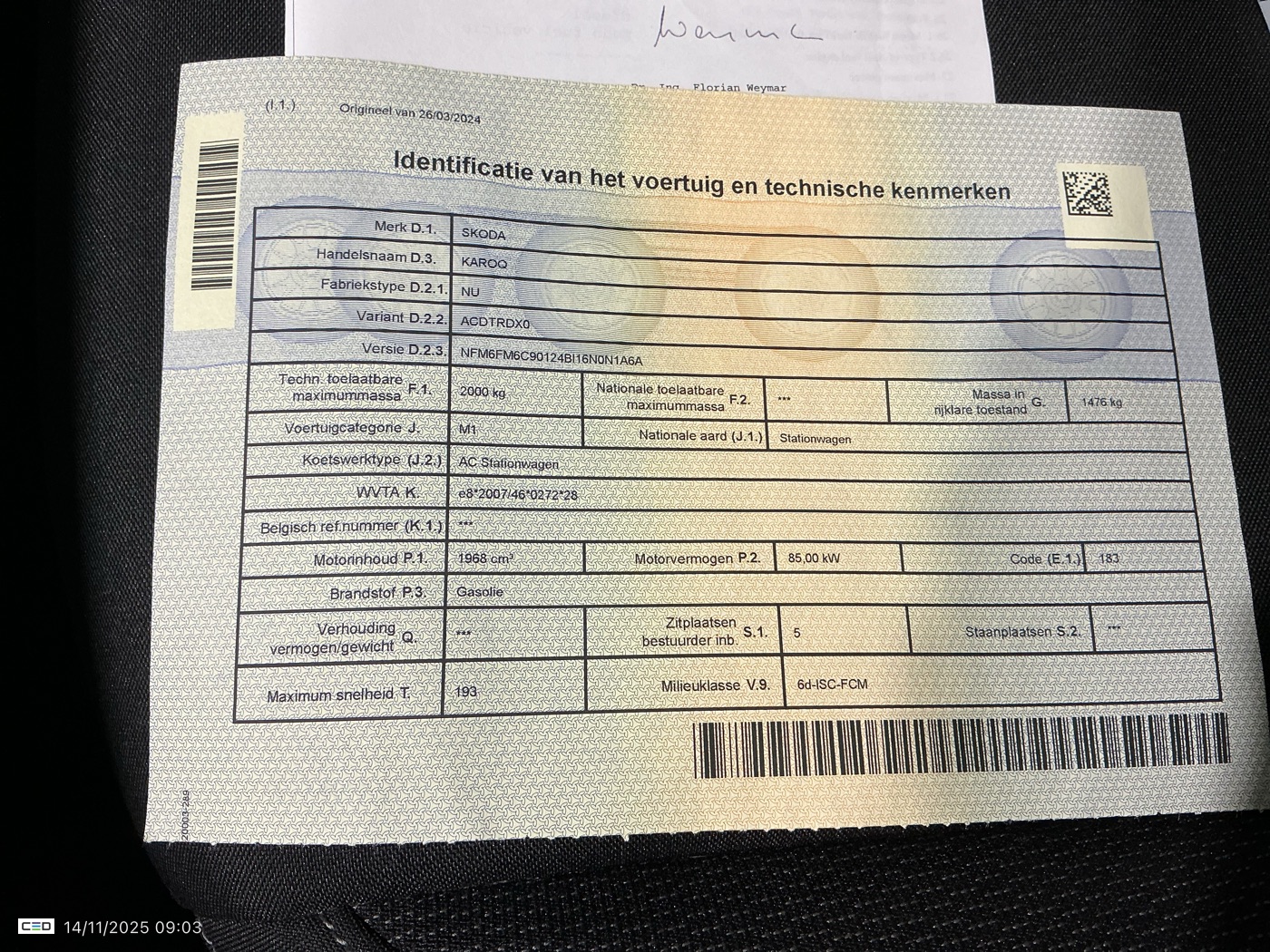 SKODA 2.0 CRTDI 85KW CORPORATE (Berline, Diesel, , 03/2024, 30.481 km, 115 pk, CO2: g/km)