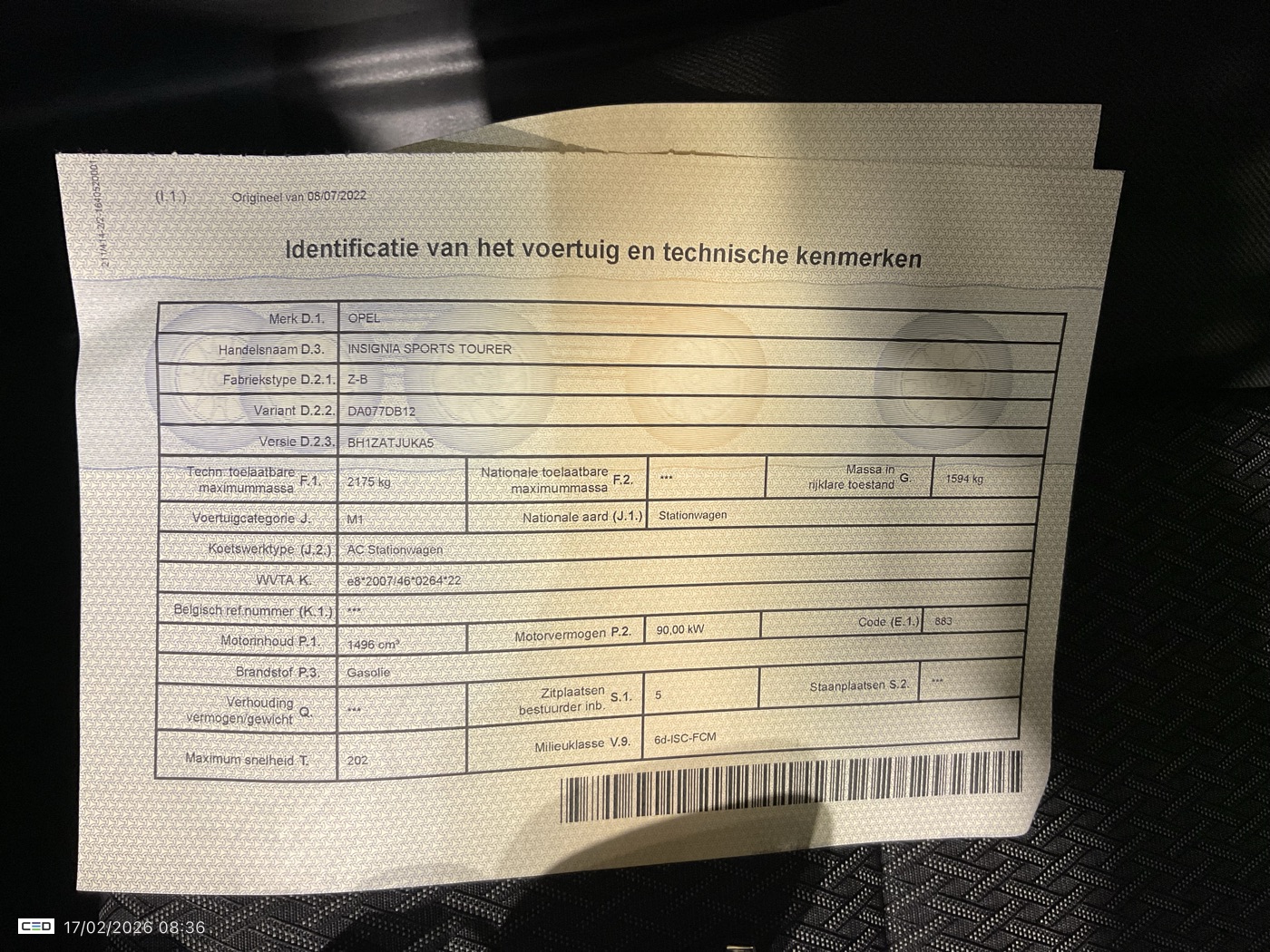 OPEL INSIGNIA SPORTS TOURER1.5 TURBO D 90KW S-S BUSINESS EDITION (Break, Diesel, Manual, 07/2022, 141.810 km, 122 pk, CO2: g/km)