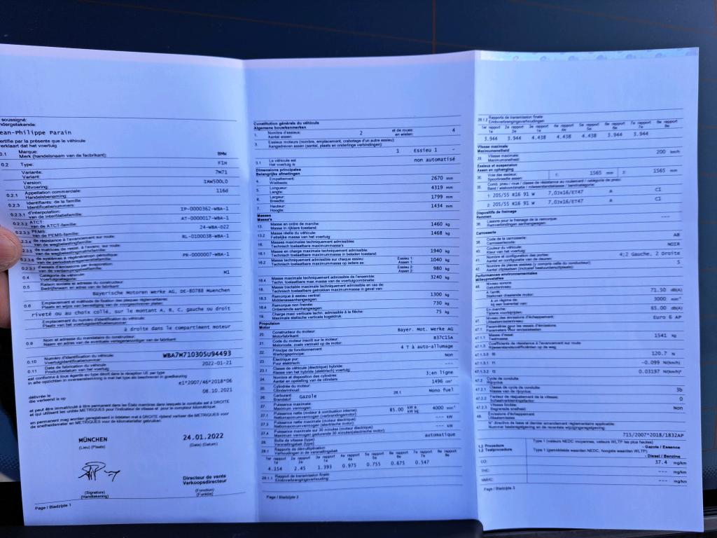 BMW 116 1.5 DA (85KW) (Berline, Diesel, Automaat, 04/2022, 116.706 km, 116 pk, CO2: g/km)