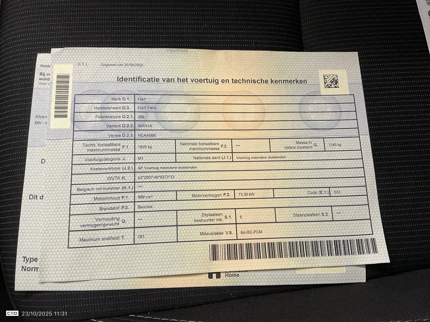 FIAT TIPO SW1.0 FIREFLY (Break, Benzine, , 08/2022, 59.437 km, 101 pk, CO2: 123 g/km)