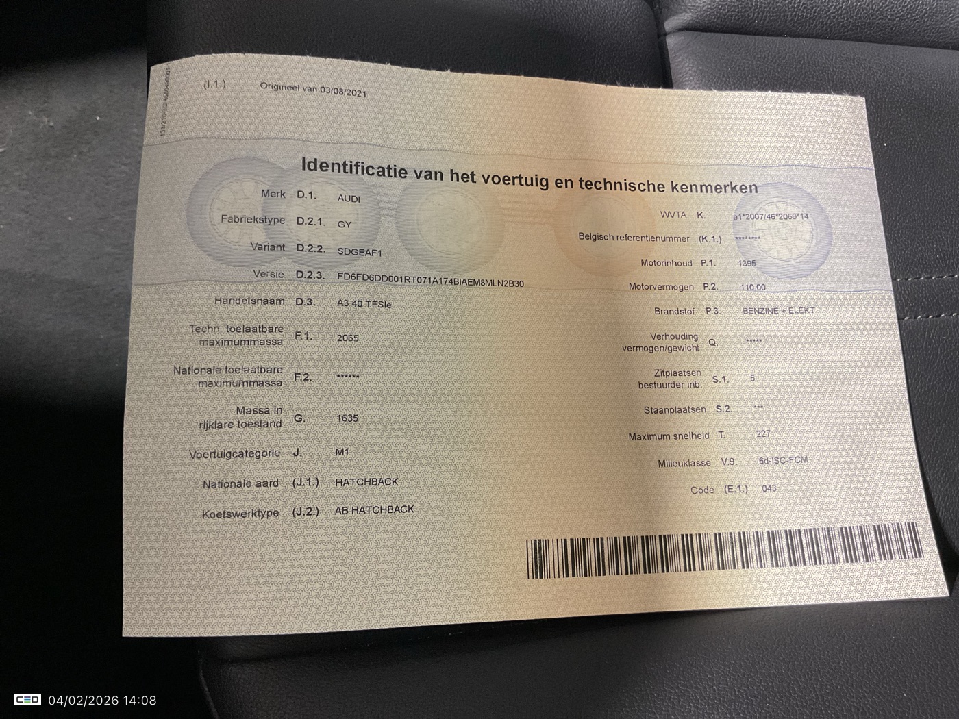 AUDI A3 1.4 40 TFSI E S TRON. ADVANCED SPORTBACK (4/5-Deuren, Benzine, Automaat, 08/2021, 89.515 km, 150 pk, CO2: g/km)