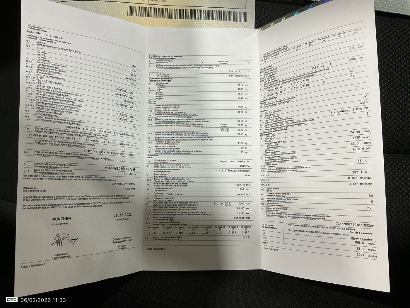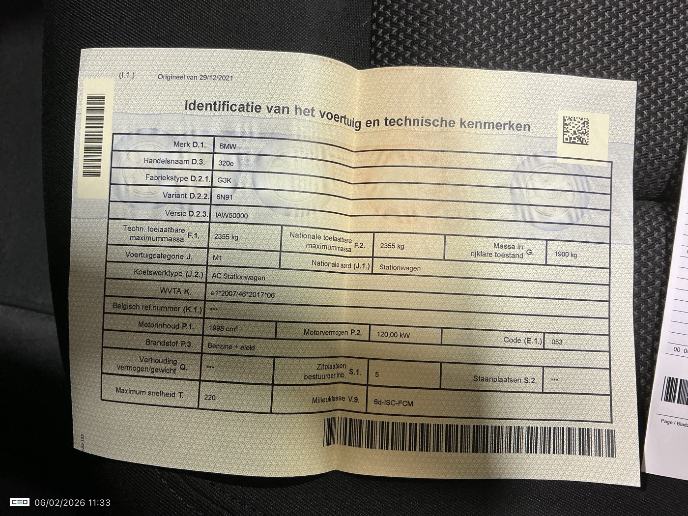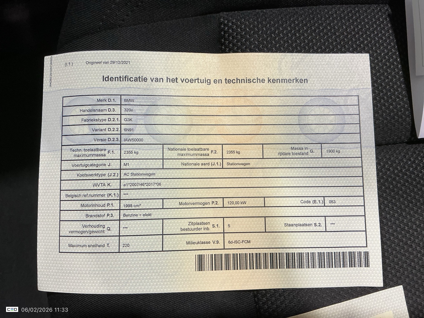 BMW 320 2.0 E TOURING (Break, Benzine, Automaat, 12/2021, 78.299 km, 163 pk, CO2: g/km)