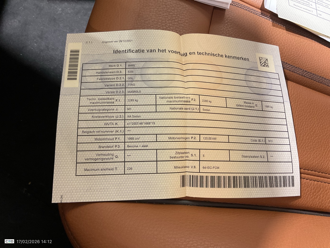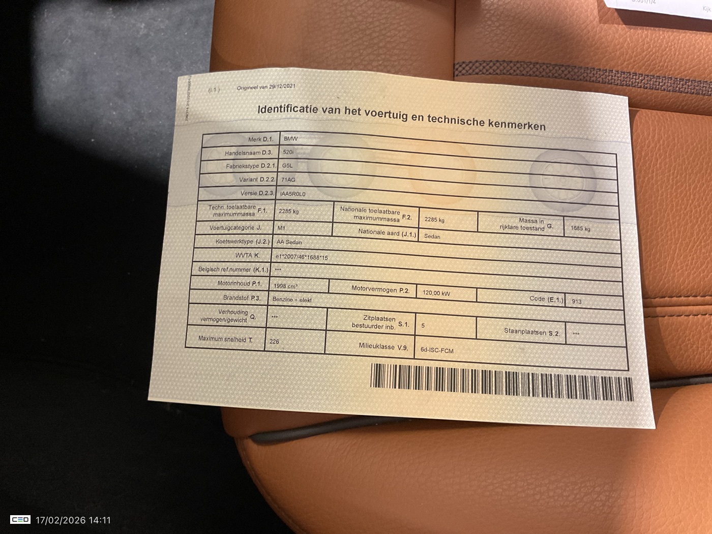 BMW 520 IA MHEV (Berline, Benzine, Automaat, 12/2021, 129.985 km, 163 pk, CO2: g/km)