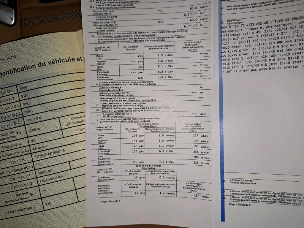 BMW 530 2.0 E 215KW AUTO (Berline, Benzine, Automaat, 02/2023, 57.590 km, 184 pk, CO2: 33 g/km)