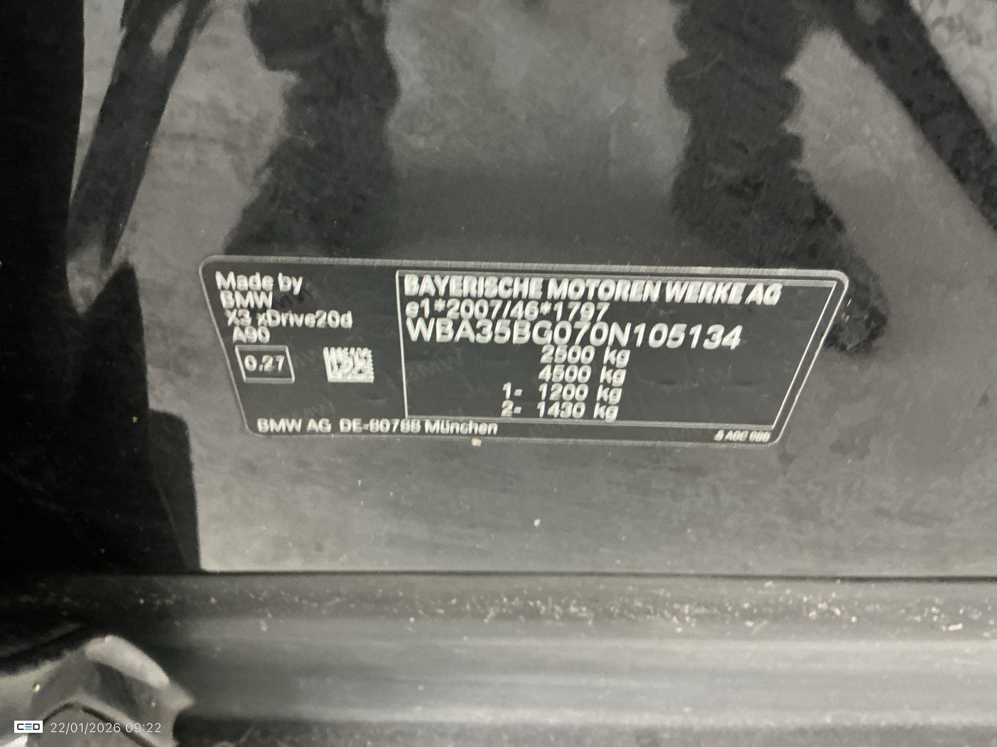 BMW X3 20182.0 dA xDrive20 MHD AdBlue (Berline, Diesel, Automaat, 01/2022, 159.481 km, 163 pk, CO2: 155 g/km)