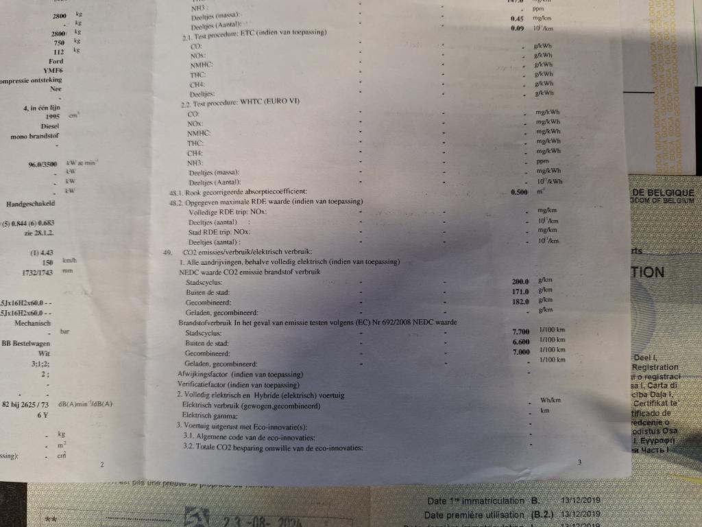 FORD M TRANSIT 2T 350 FOU WB HR DSL2.0 TDCi L2H2 Trend (Berline, Diesel, Manual, 12/2019, 93.608 km, 130 pk, CO2: 179 g/km)