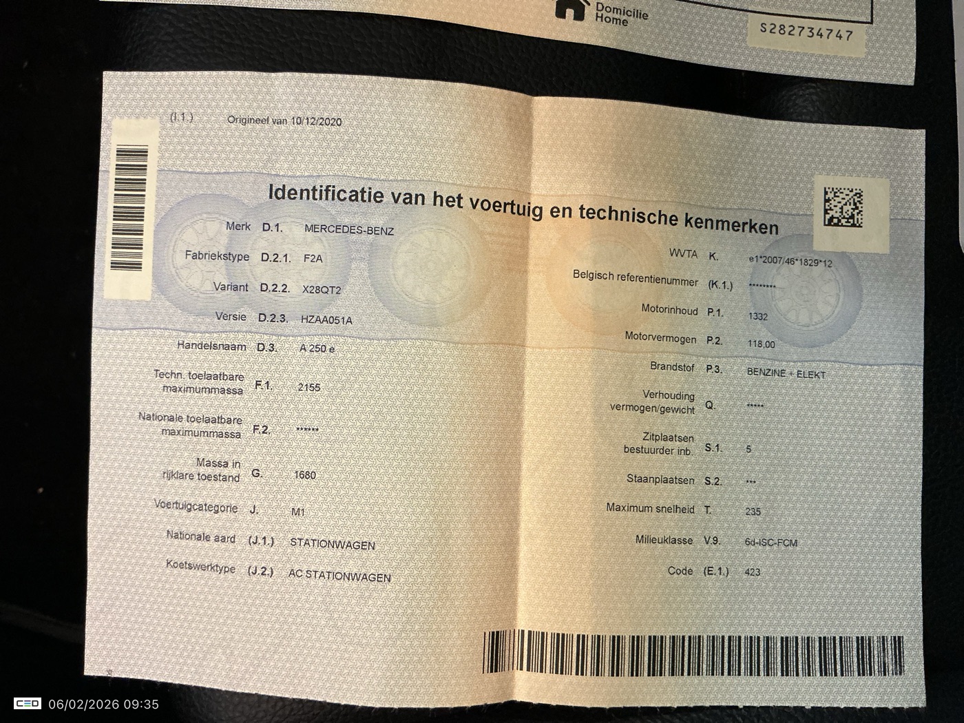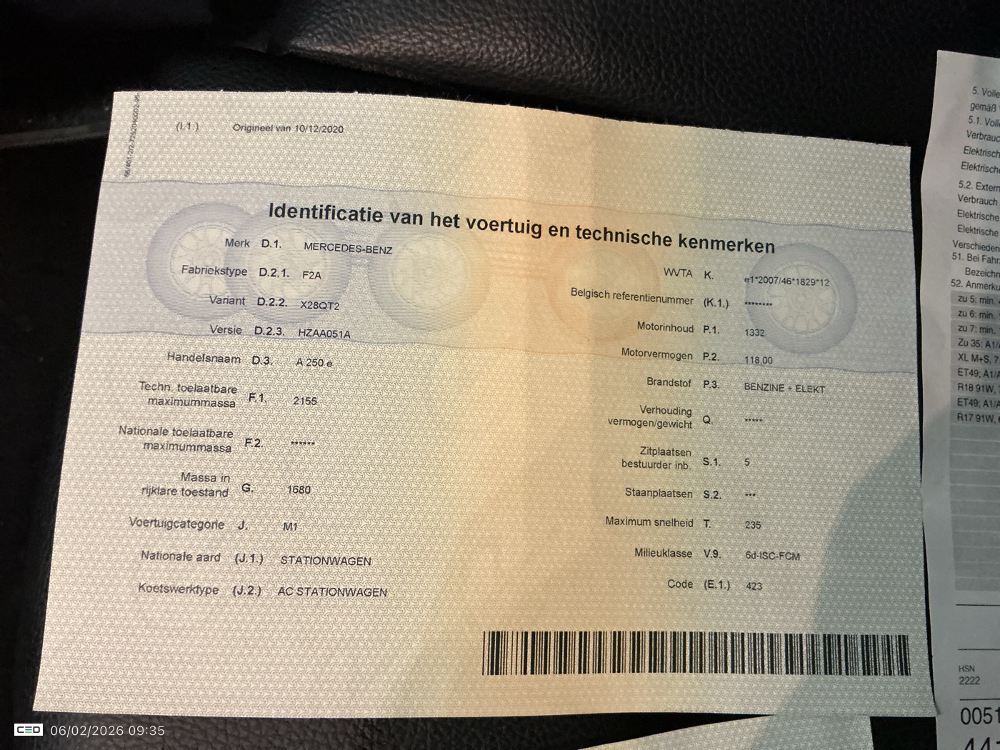 MERCEDES-BENZ C200 A-LASS1.3 A 250 E DCT BUSINESS SOLUTION (Berline, Benzine, Automaat, 12/2020, 138.625 km, 160 pk, CO2: g/km)