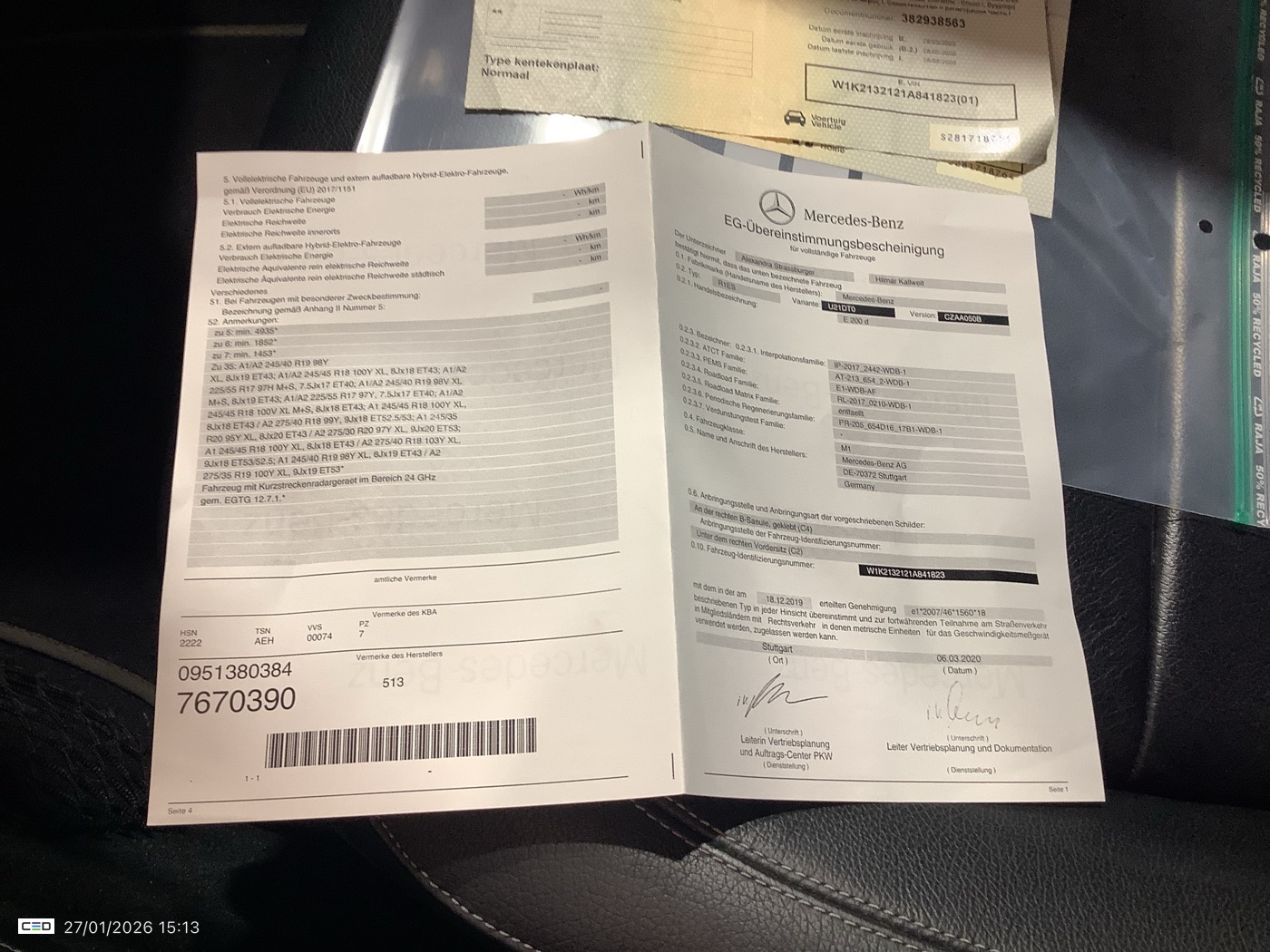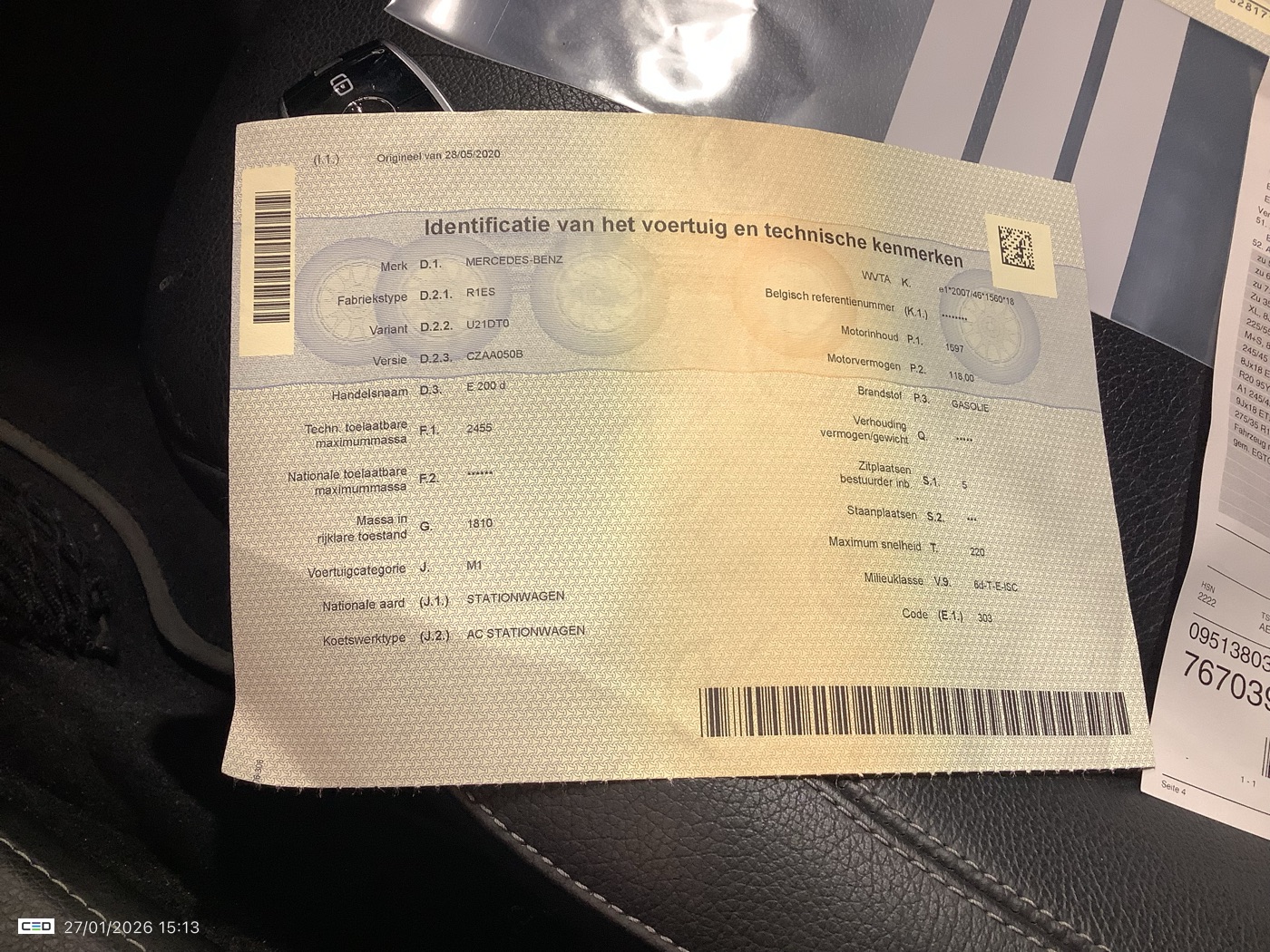 MERCEDES-BENZ E 200 E200 D BUSINESS SOLUTION (Berline, Diesel, Automaat, 05/2020, 224.598 km, 160 pk, CO2: g/km)