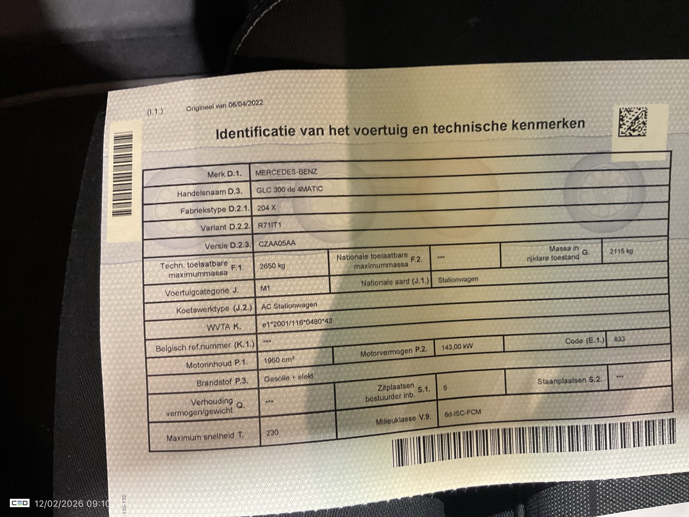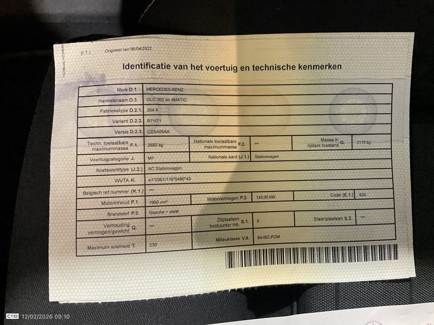 MERCEDES-BENZ C200 GL2.0 GLC 300 DE PHEV 4MATIC 4WD AUTO (Berline, Diesel, Automaat, 04/2022, 72.295 km, 194 pk, CO2: g/km)