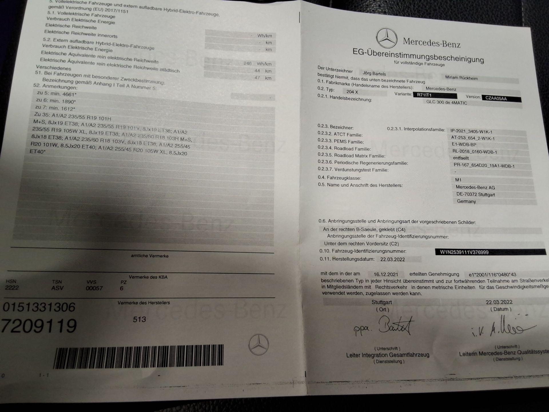 MERCEDES-BENZ C200 GL2.0 GLC 300 DE PHEV 4MATIC 4WD AUTO (Berline, Diesel, Automaat, 06/2022, 119.077 km, 194 pk, CO2: g/km)