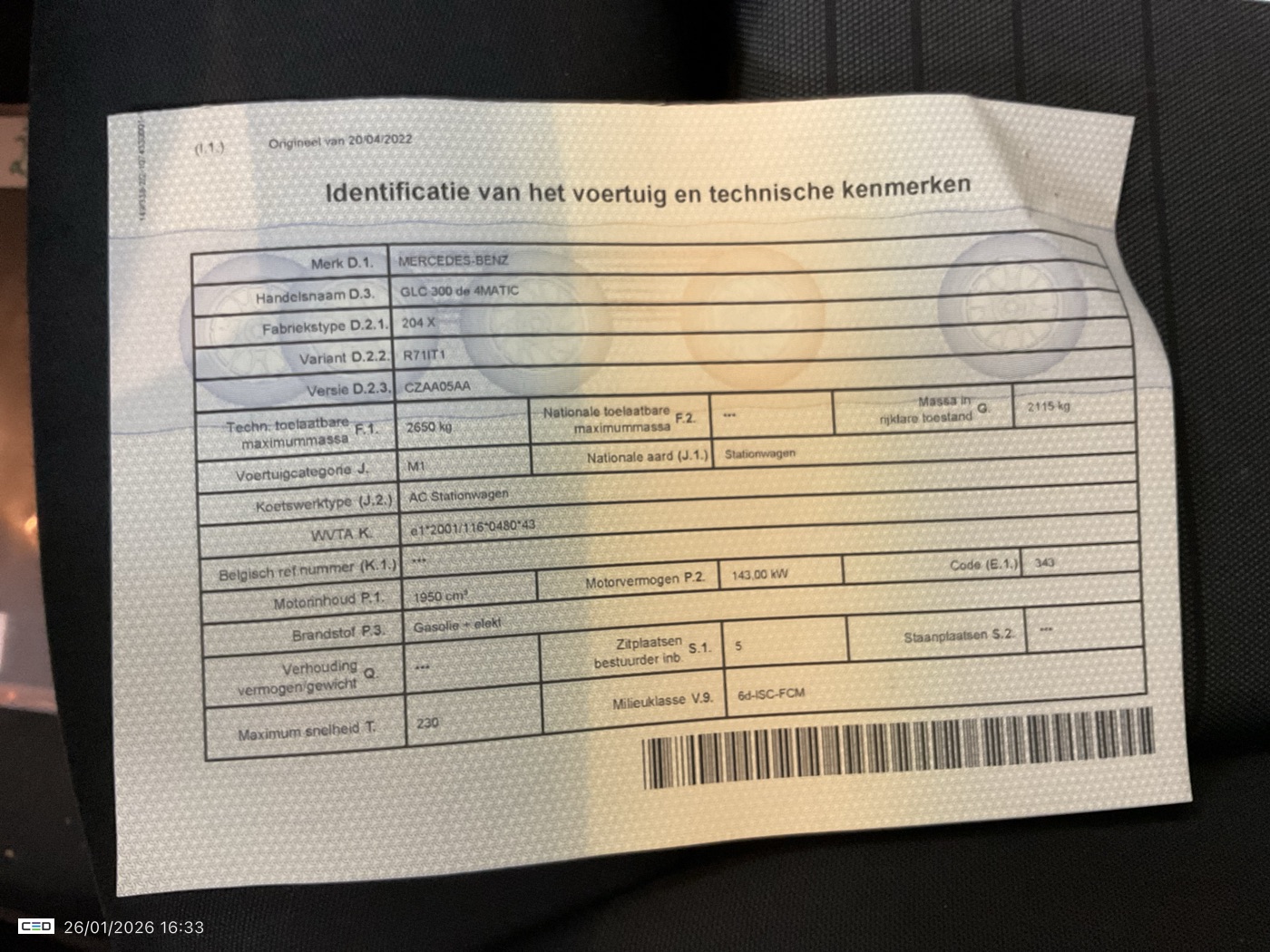 MERCEDES-BENZ C200 GL2.0 GLC 300 DE PHEV 4MATIC 4WD BUS SOL (Berline, Diesel, Automaat, 04/2022, 203.255 km, 194 pk, CO2: 47 g/km)