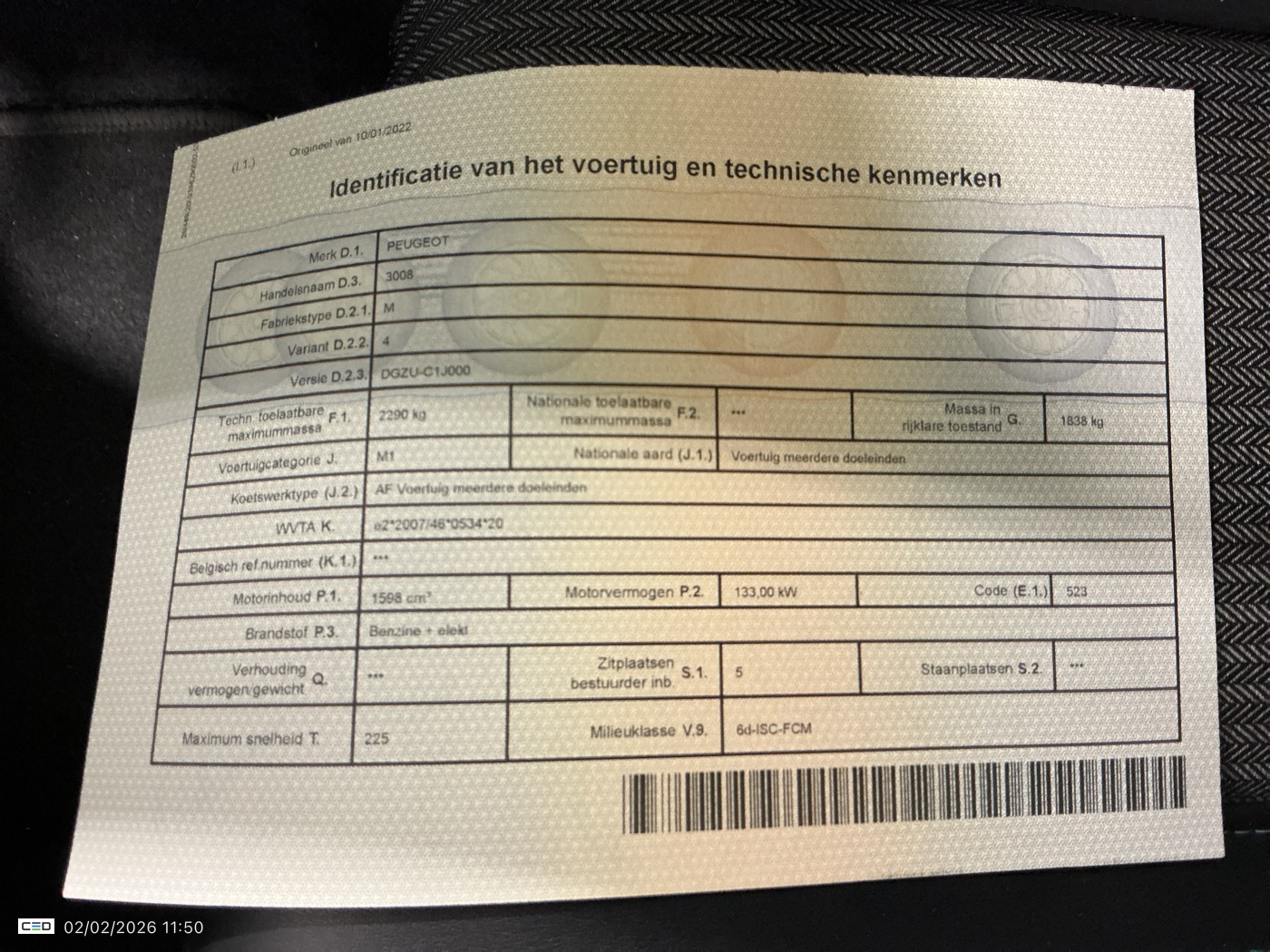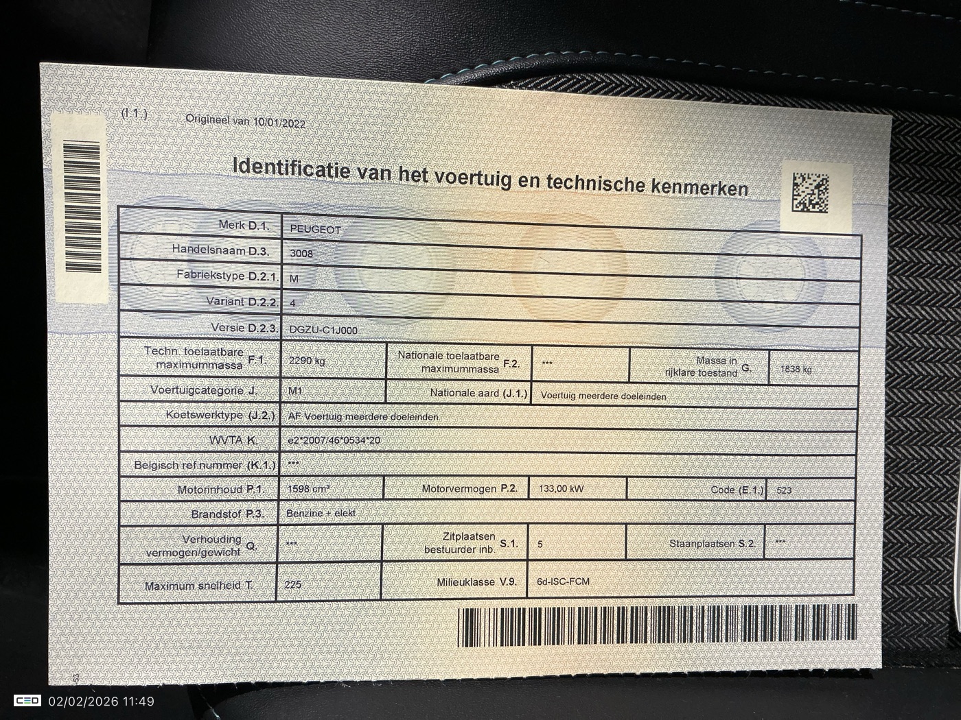 PEUGEOT 3008 1.6 PHEV 225 E-AUTO8 ALLURE (Berline, Benzine, Automaat, 01/2022, 105.698 km, 181 pk, CO2: g/km)