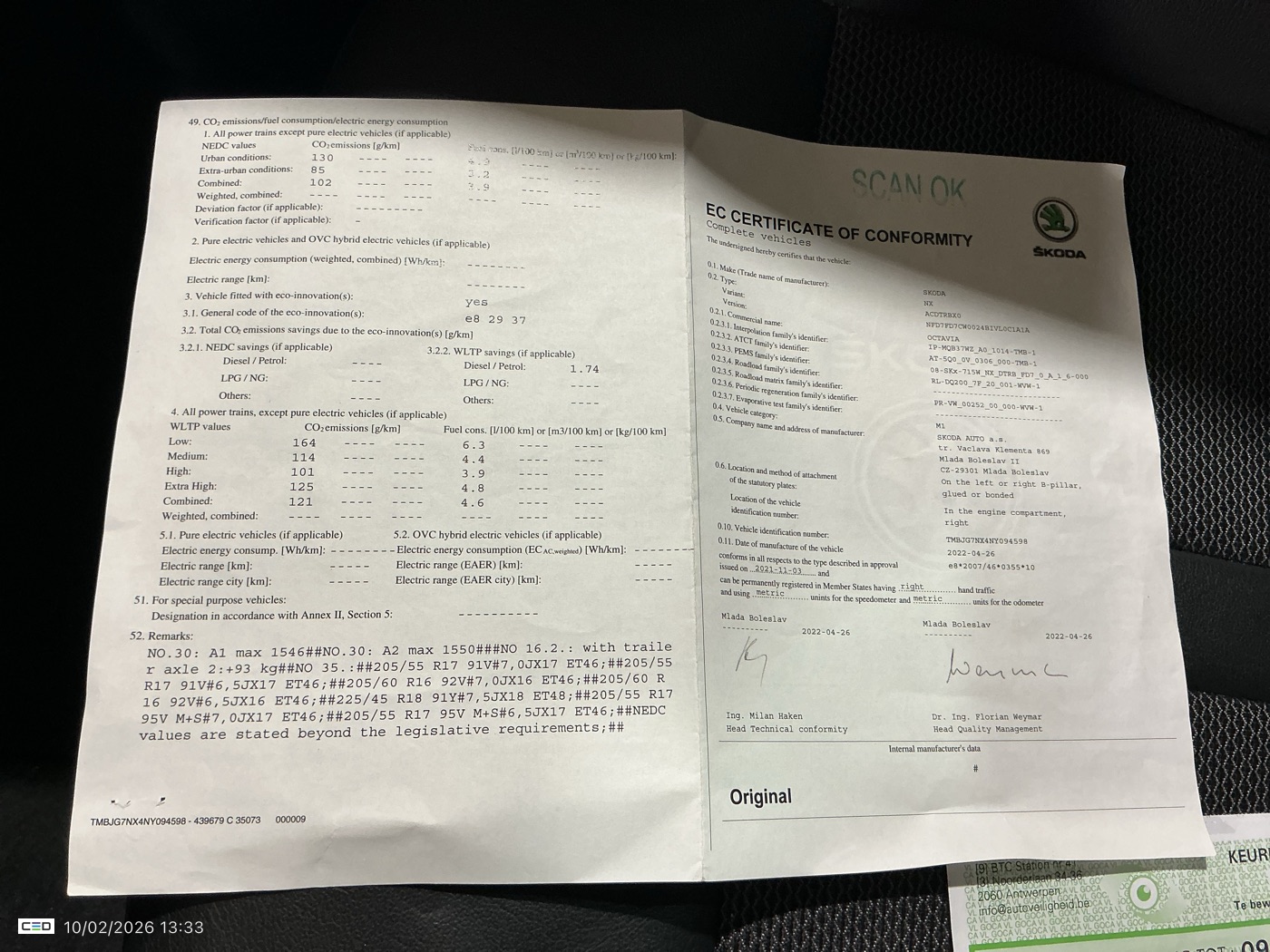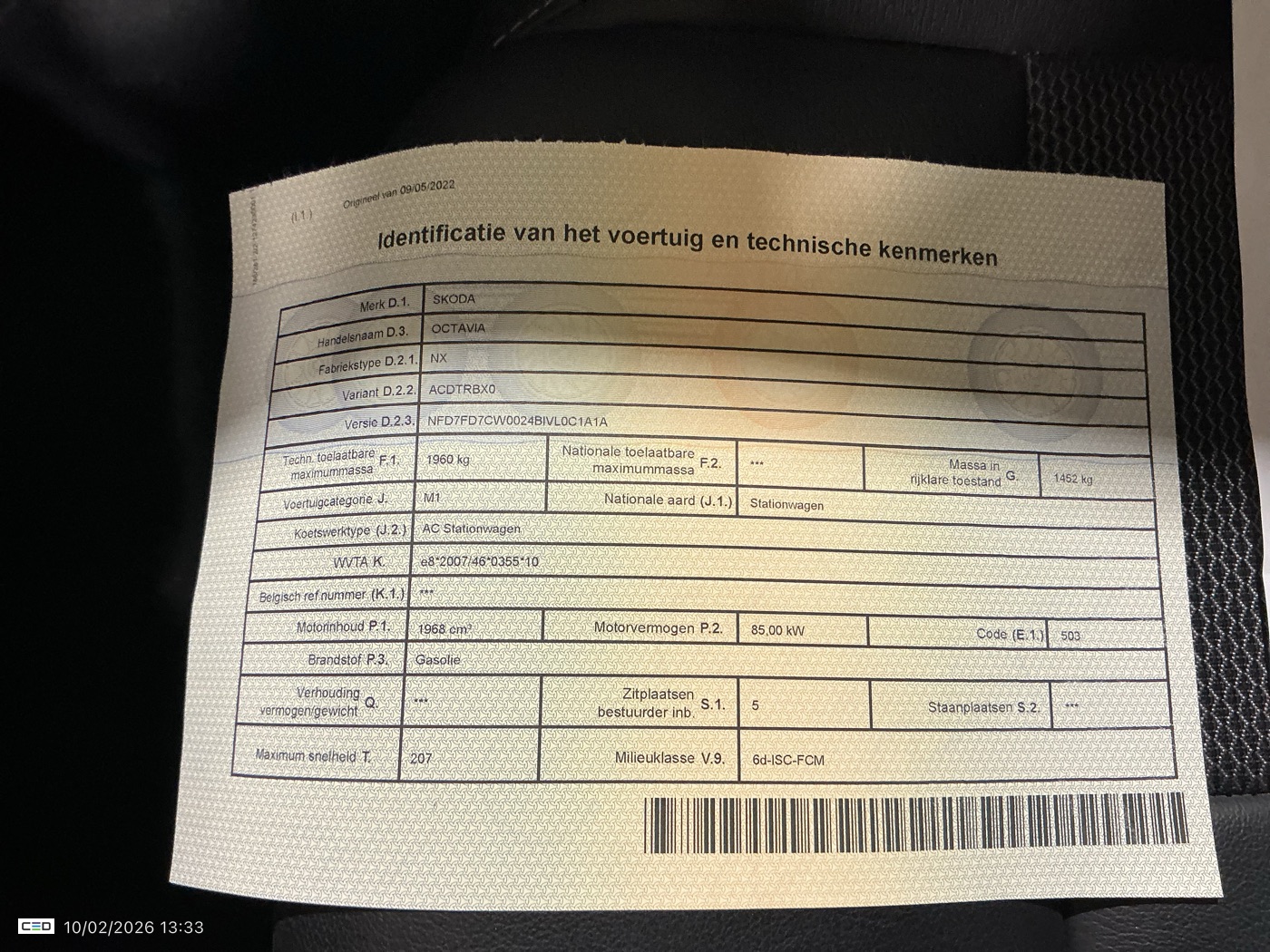 SKODA OCTAVIA 2.0 CRTDI 85KW DSG7 CLEVER (Berline, Diesel, Automaat, 05/2022, 103.480 km, 115 pk, CO2: g/km)
