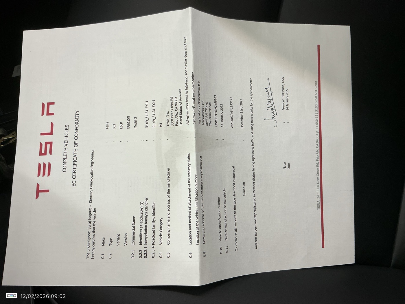 TESLA MODEL 3 BEV 50KWH STANDARD RWD PLUS AUTO (Berline, Electric, Automaat, 02/2022, 55.749 km, 325 pk, CO2: 0 g/km)