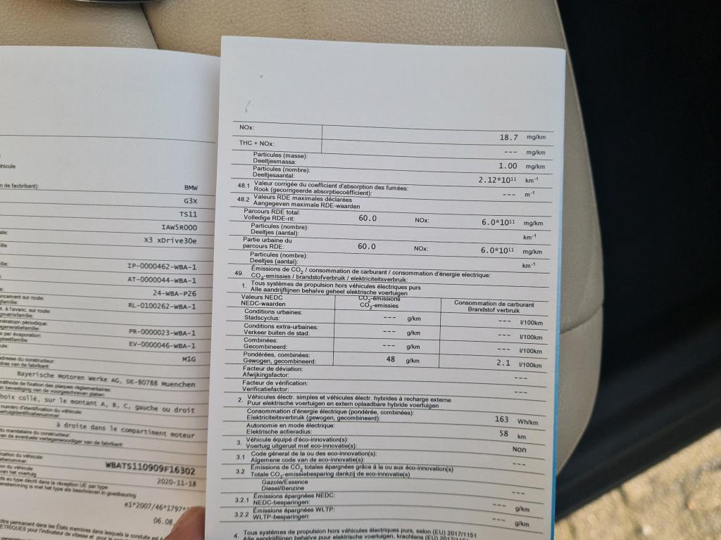 BMW X3 20182.0iA xDrive30e PHEV OPF (Berline, Benzine, , 03/2021, 100.209 km, 163 pk, CO2: 45 g/km)